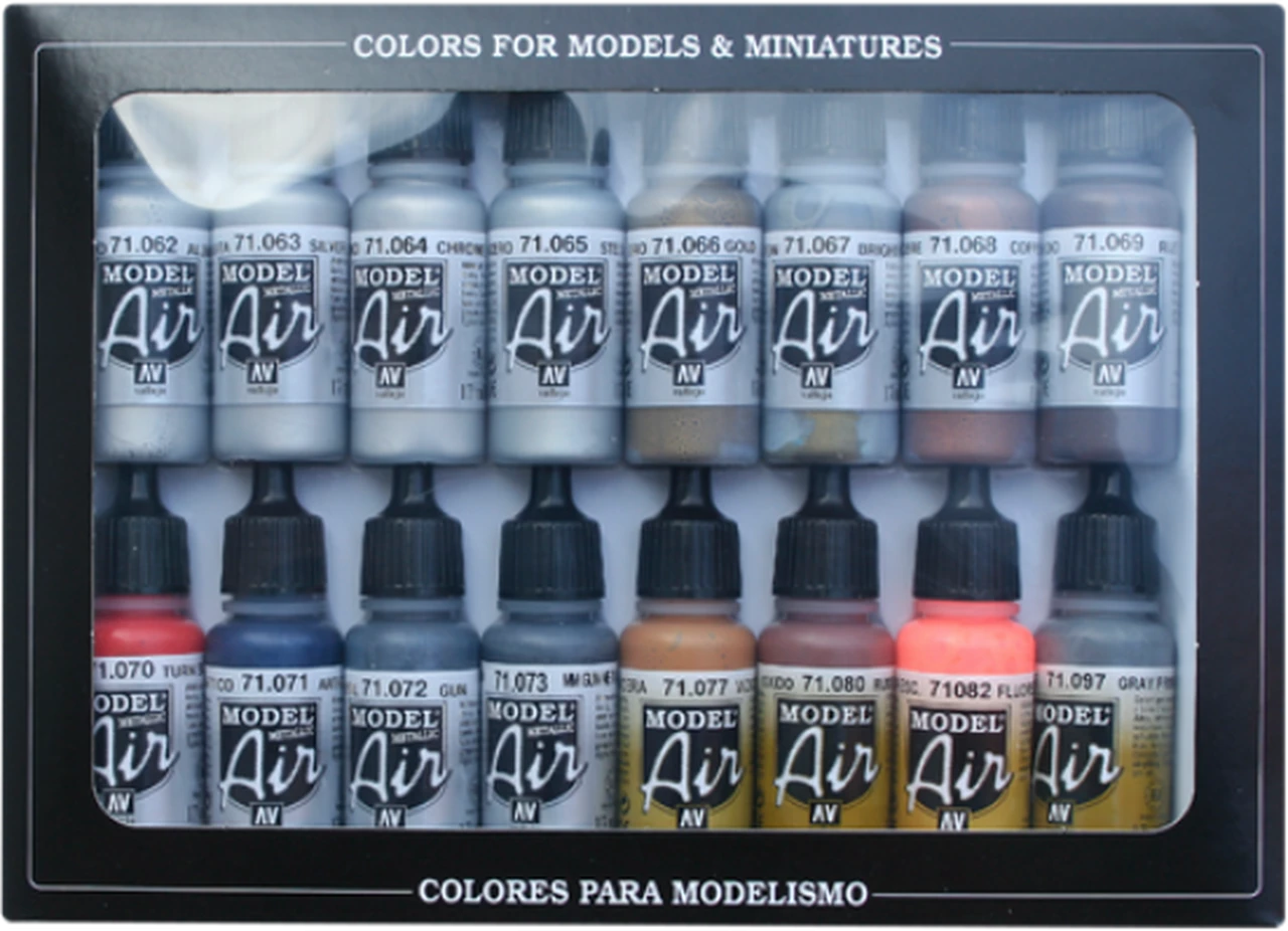Contains 16 17ml. Model Air acrylic airbrush-ready paints. Click on picture to view colors.