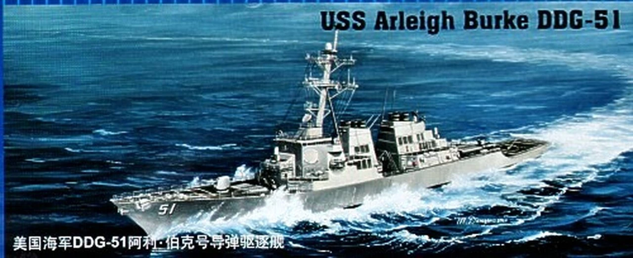 The USS Arleigh Burke (DDG-51), named for Admiral Arleigh Albert Burke, USN (1901-1996), is the lead ship of Arleigh Burke-class guided missile destroyers. She was laid down by the Bath Iron Works company in Bath, Maine, on December 6, 1988, and launched on September 16, 1989 by Mrs. Arleigh Burke. The Admiral himself was present at her commissioning ceremony on July 4, 1991, held on the waterfront in downtown Norfolk, Virginia.