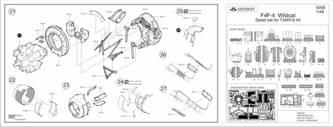 Resin and photoetch detail set for Tamiya F4F Wildcat. Β Model kit not included. Β Includes cockpit upgrade, engine upgrade, wing gun bays, wingfold, and dorsal lifeboat compartment. Β