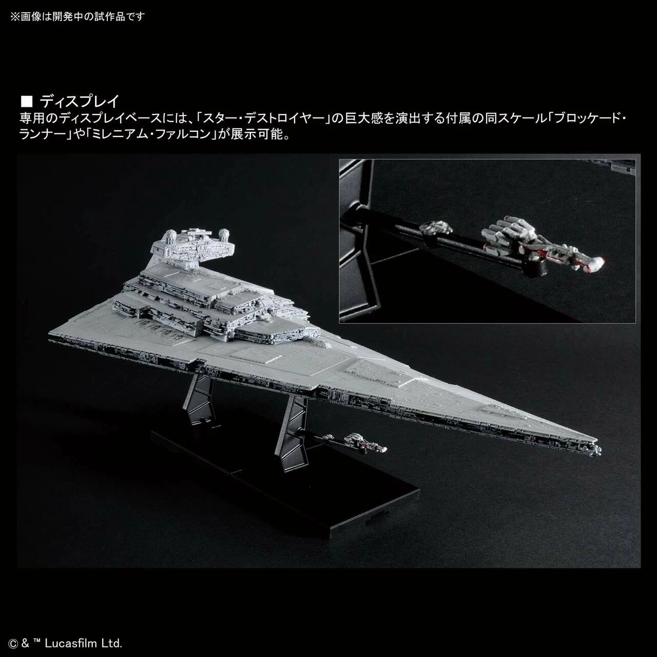 This 12.6 inch long model kit comes with a display stand, in-scale Millennium Falcon, and a Blockade runner to recreate the sequences in “Star Wars Ep. IV A New Hope”.
