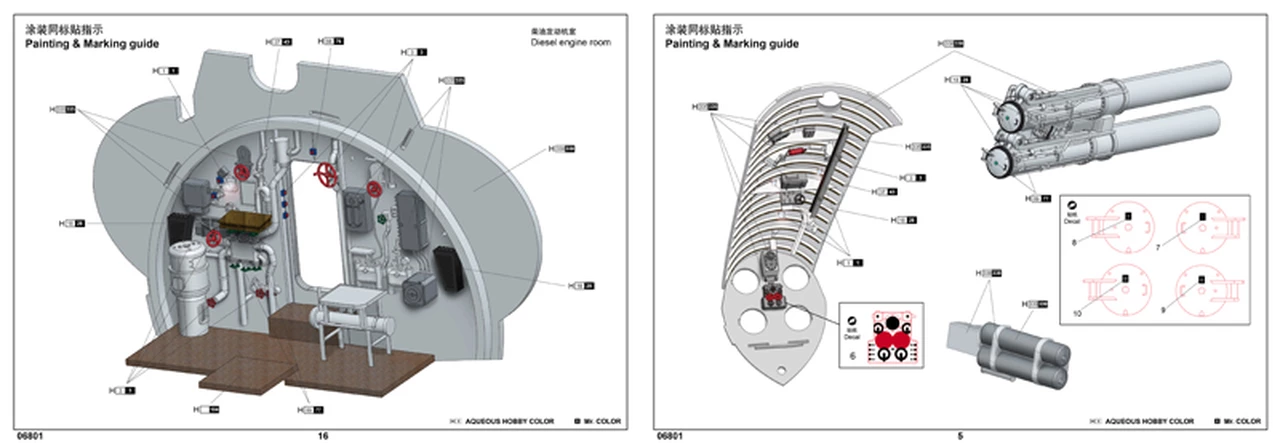 – Fully detailed interior includes front and rear living rooms, transmitter receiver room, sonar room, central control room, diesel engine room, electromotor and rear torpedo tube compartment