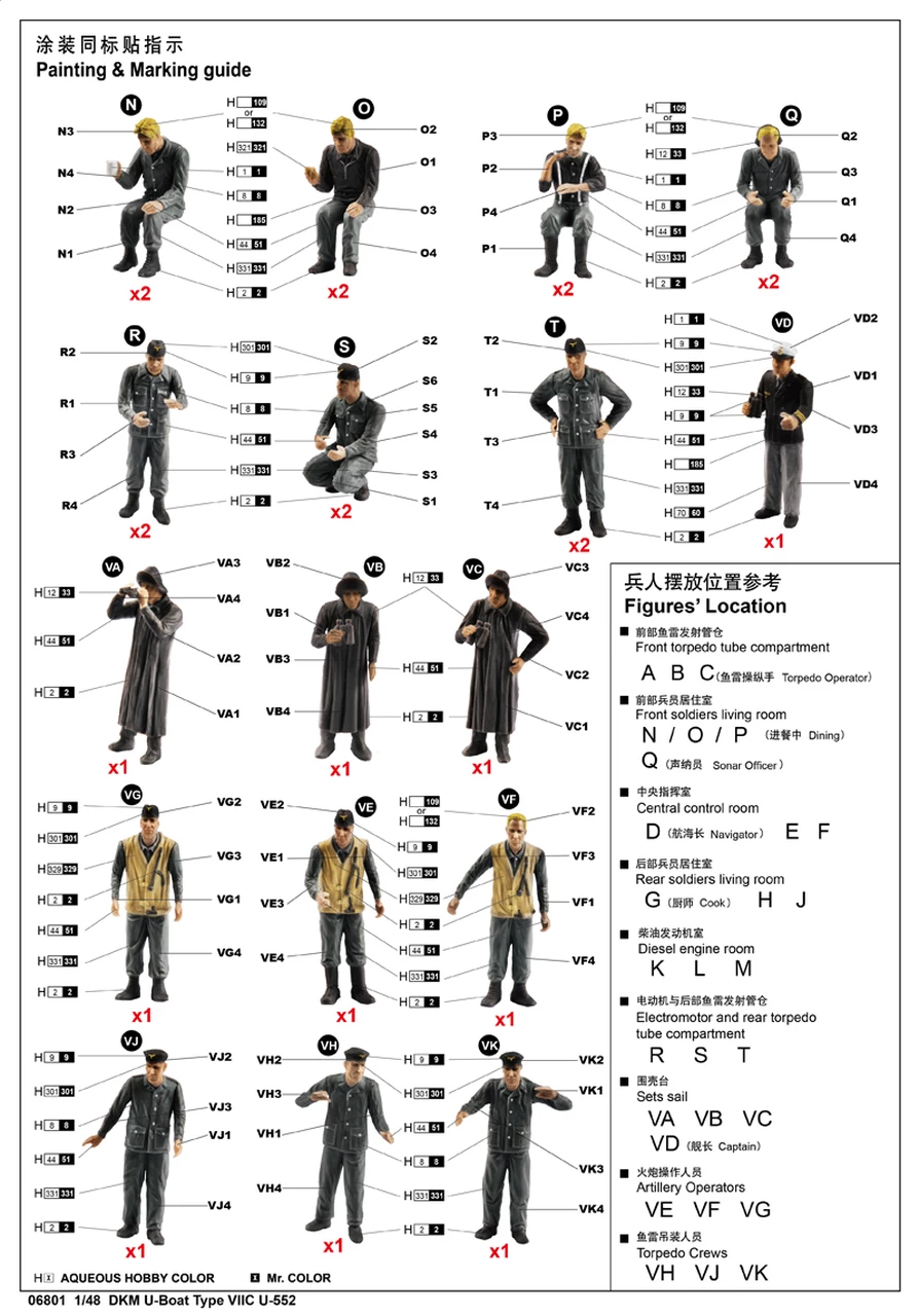 – Includes parts for 36 figures including torpedo operators, sonar officers, diners, navigators, cooks, captain, artillery operators, torpedo crews and more
