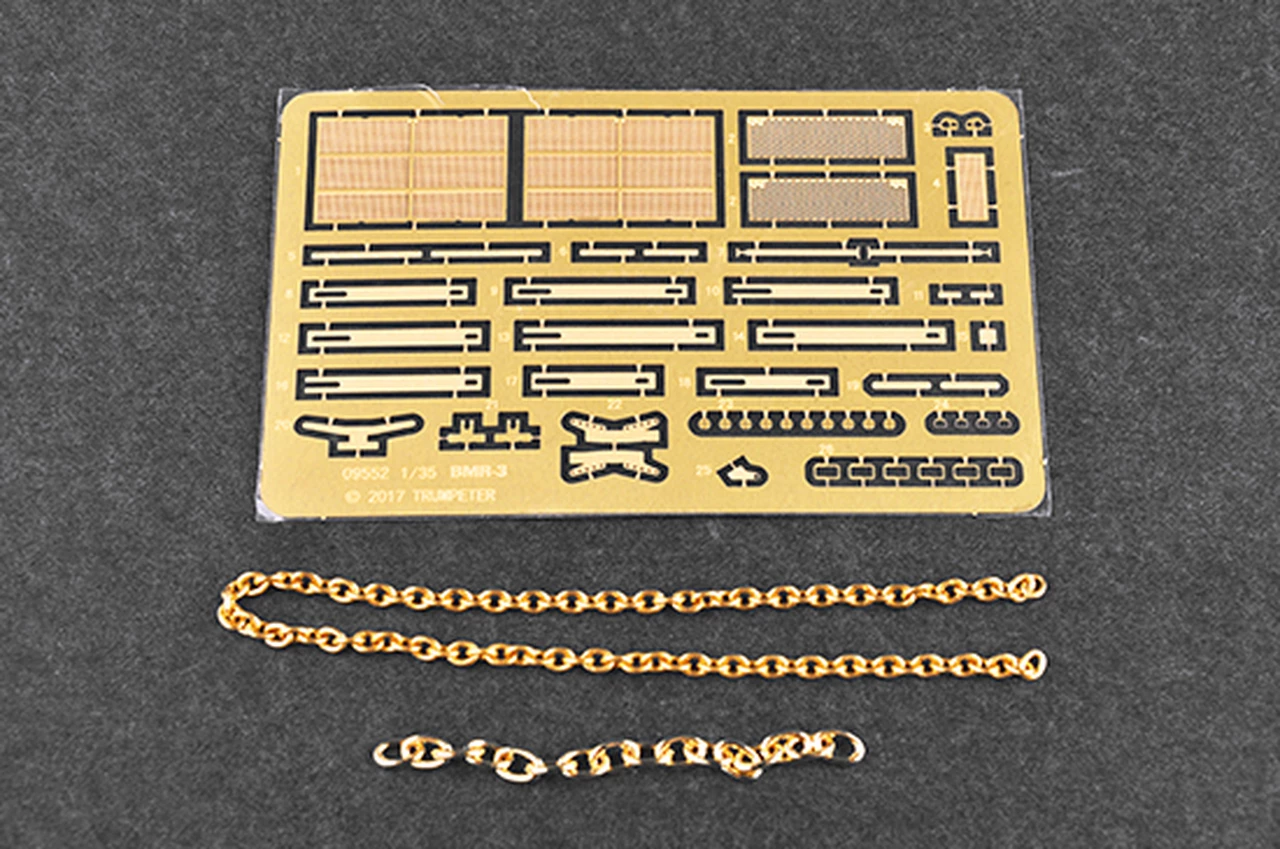 In the early days of the Afghan War, the Soviets began developing the BMR series of mine clearing vehicles. Type BMR-1 (Su-122) entered service in 1982, Type BMR-2 (T-54) in 1985, and Type BMR-3 in 1995. BMR-3 was based on the T-72 tank chassis and fitted with the KMT-7 mine roller and plow device. The drum-type mine roller could clear two channels in AT minefields 800mm wide at a speed of 12km per hour and in waters up to one meter deep with a flow of two meters per second. The vehicle is equipped with a 12.7mm anti-aircraft gun. BMR-3 was succeeded by Type BMR-3M (T-90) with ERA from 2000.