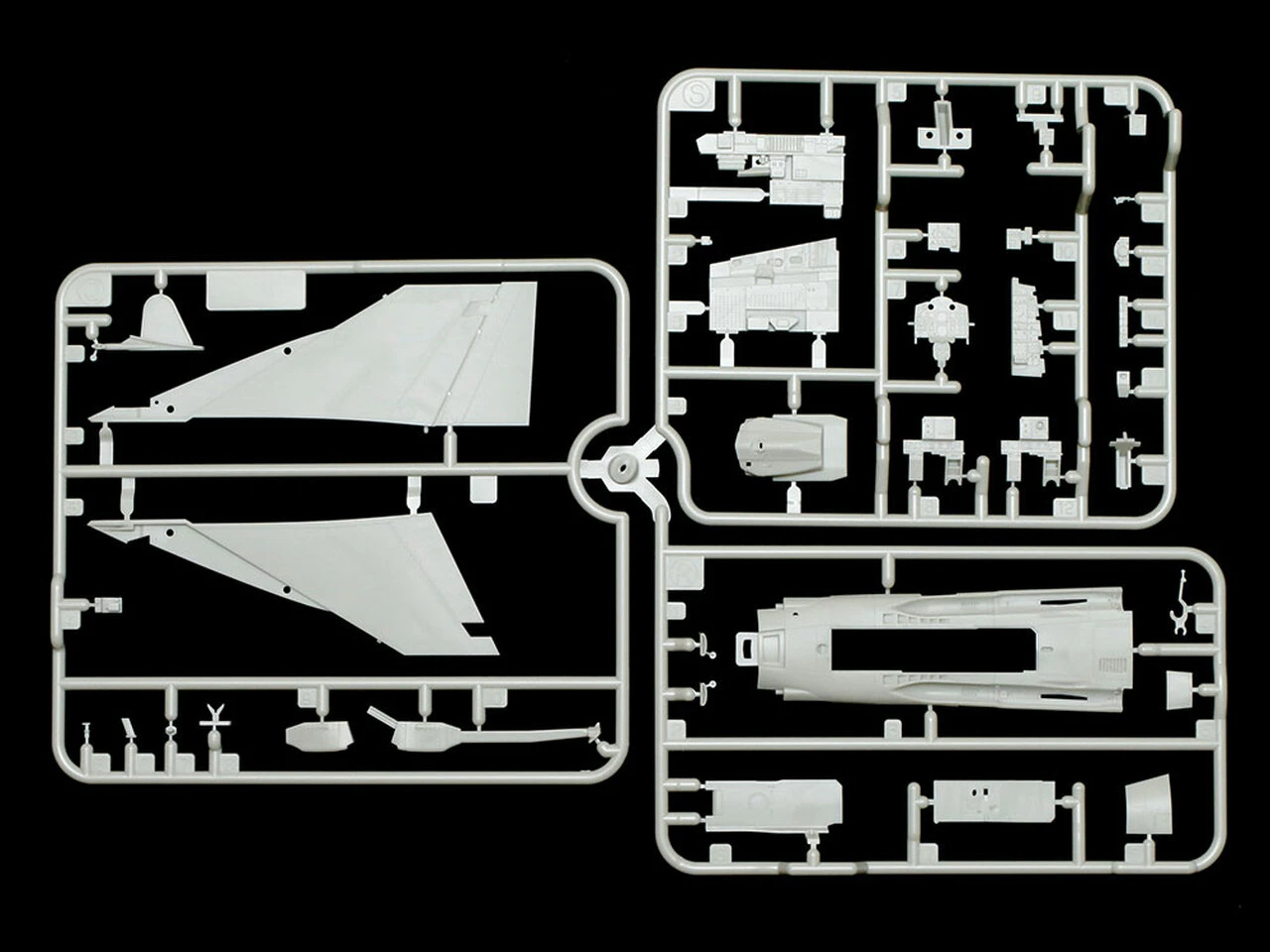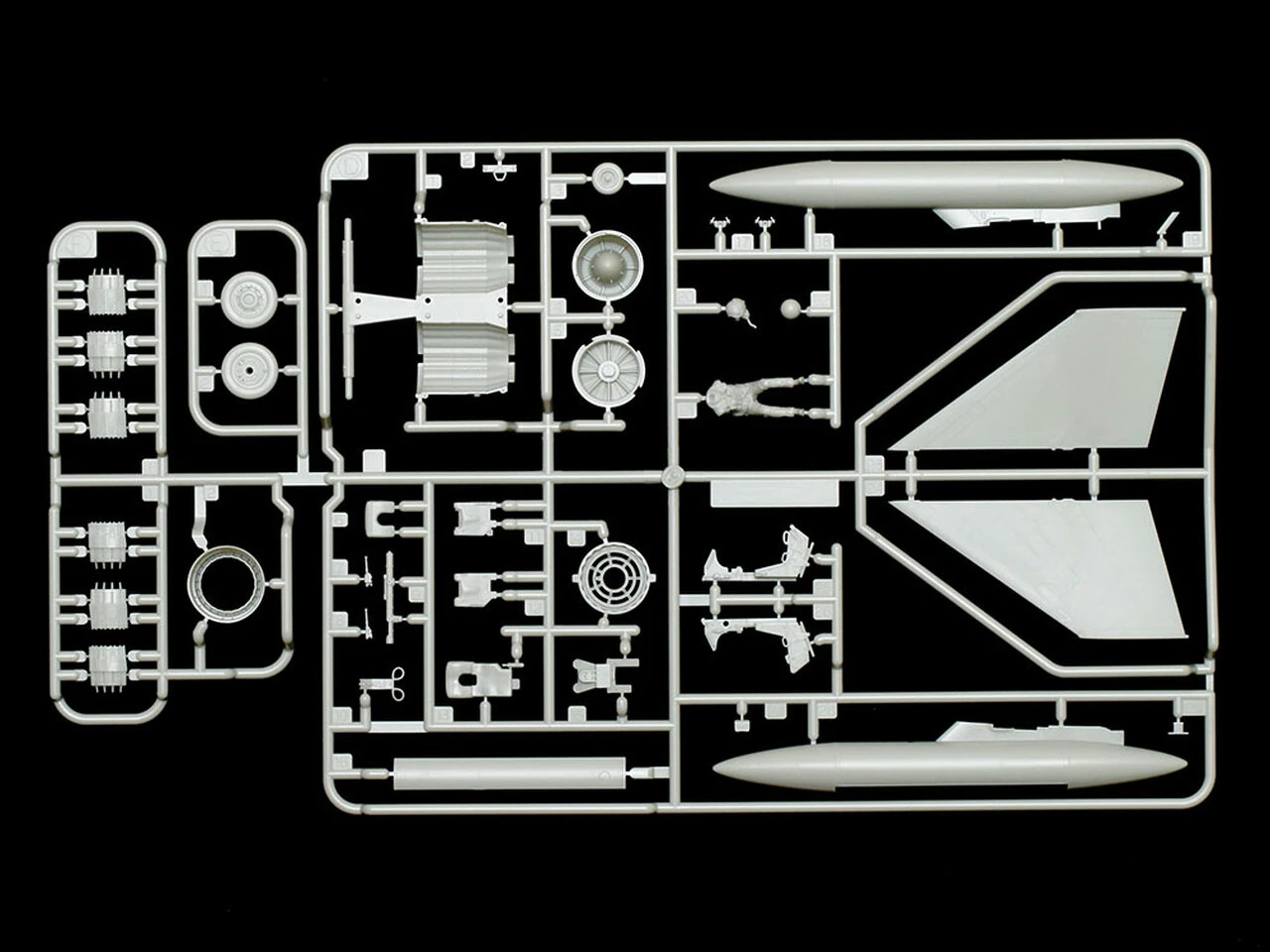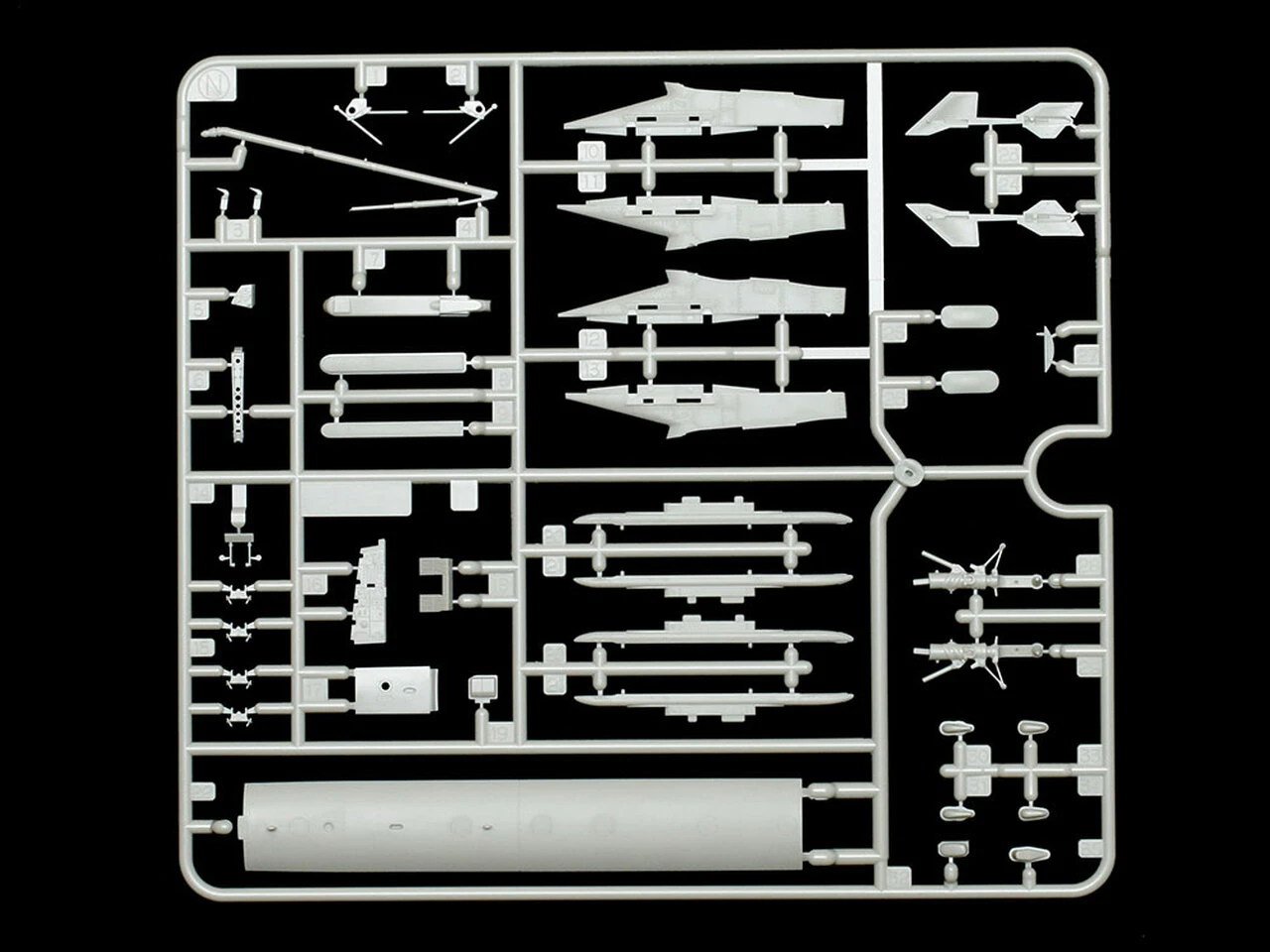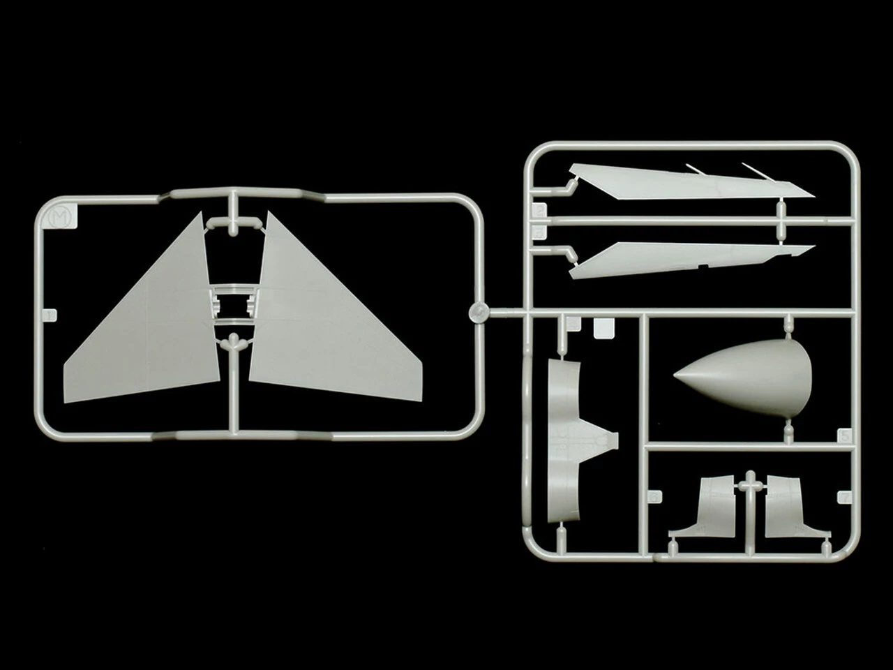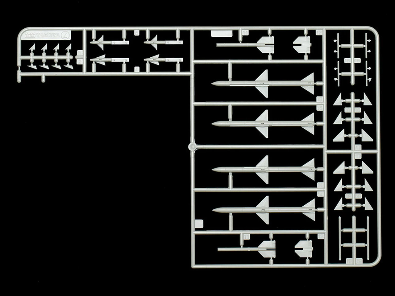 β’ Parts are included to depict missiles (the same as Kit # 61114) and drop tank on fuselage underside.