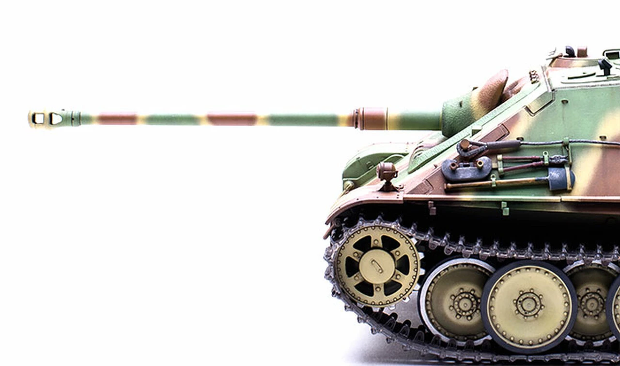 This model kit has a total of 975 parts. With the optional parts included in the kit, you have the options to build a Jagdpanther Ausf. G1 tank destroyer from different time periods.