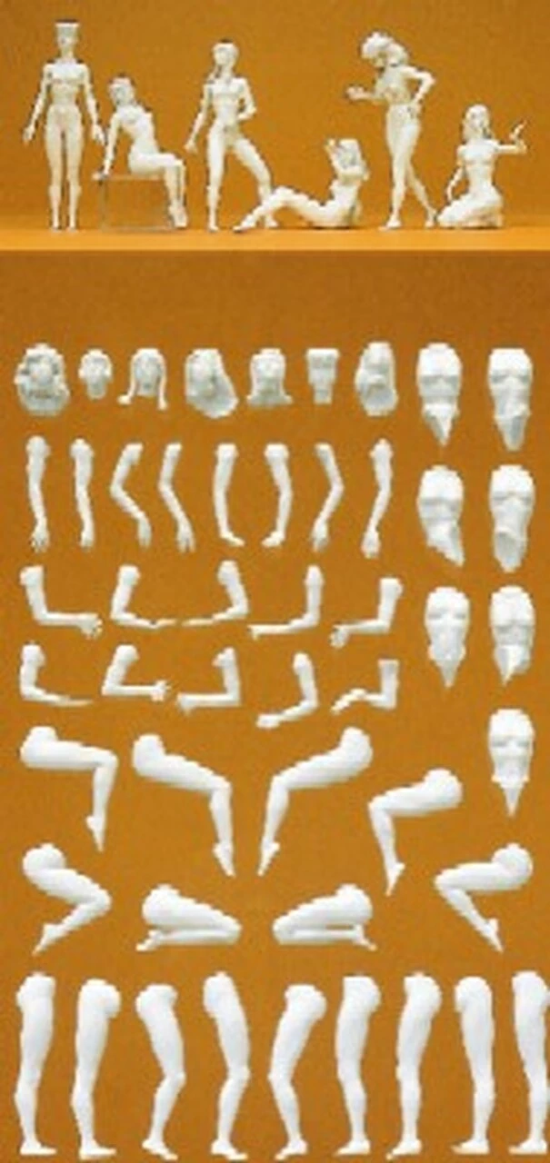 1/24 Scale. Plastic kit painting and assembly required. Skill level 2. 1/24 Unpainted Nude Female Figures (6) (Kit)