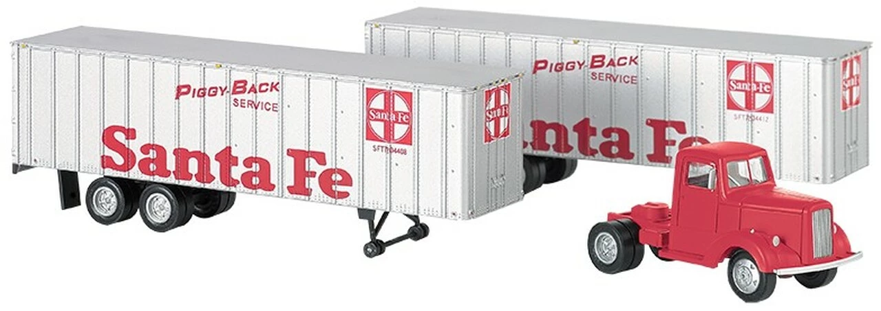 Buy π 1950s-60 Truck Cab w/2 Piggyback Trailer Santa Fe HO Scale Bachmann Trains π