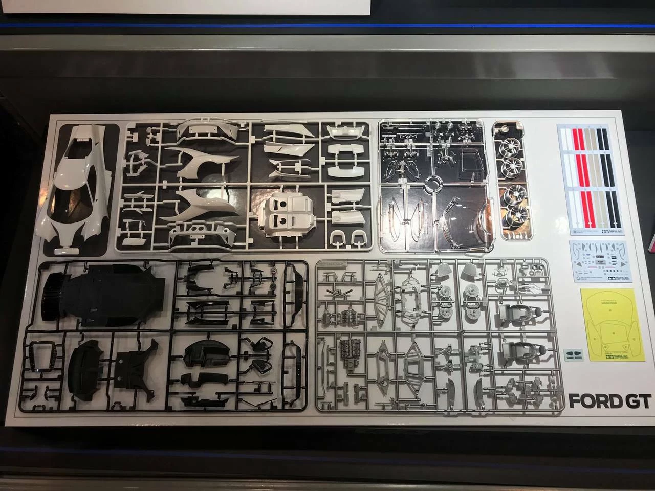 Ford poured their expertise into the carbon fiber body, endowing it with highly refined aerodynamics and an alluring teardrop shape incorporating sweeping rear fenders and unique buttresses, plus an active rear wing. The 647 horsepower 3.5-liter EcoBoost V6 engine offers awesome power and exemplary response, making this street-legal car equally at home on the racetrack. Tamiyaβs model replica faithfully captures all these details thanks to the FORD Motor Company and the real-world example that Tamiyaβs car designers examined in Southern California. The end result is a replica that is sure to provide car modelers a rewarding building experience and an exquisite model to display.Β