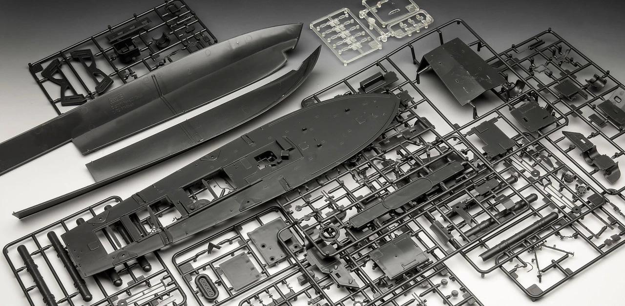 Plastic model kit starter set. Includes cement and acrylic paints required for assembly.