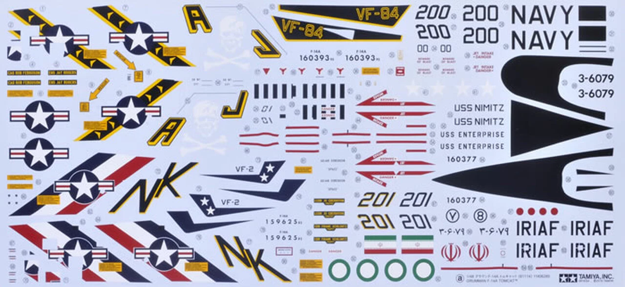 ย ย ย ย ย ย ย ย Comes with 3 marking options: 2 for high-visibility F-14As from the VF-84 (Jolly Rogers) and VF-2 (Bounty Hunters) U.S. Navy Fighter Squadrons, plus 1 Islamic Republic of Iran Air Force (IRIAF) unit F-14A