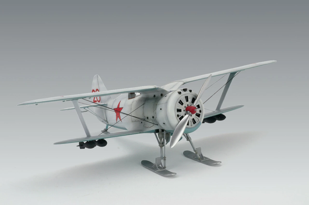 The last and most perfect of the N.N. Polikarpov Design Bureau family of biplane fighters was the I-153. It featured a gull-shaped upper wing, a retractable chassis and four ShKAS machine guns. Serial production planes had M-62 radial engines and the late series had the more powerful M-63. Its maiden flight was in August 1938. In total 3437 were produced between 1939 and 1941. In the summer of 1941 the I-153 Chaika (gull) was the basis of the Soviet Fighter Aviation along with I-16 fighters. I-153s were used in combat until mid-1943, some of them on a winter ski chassis.