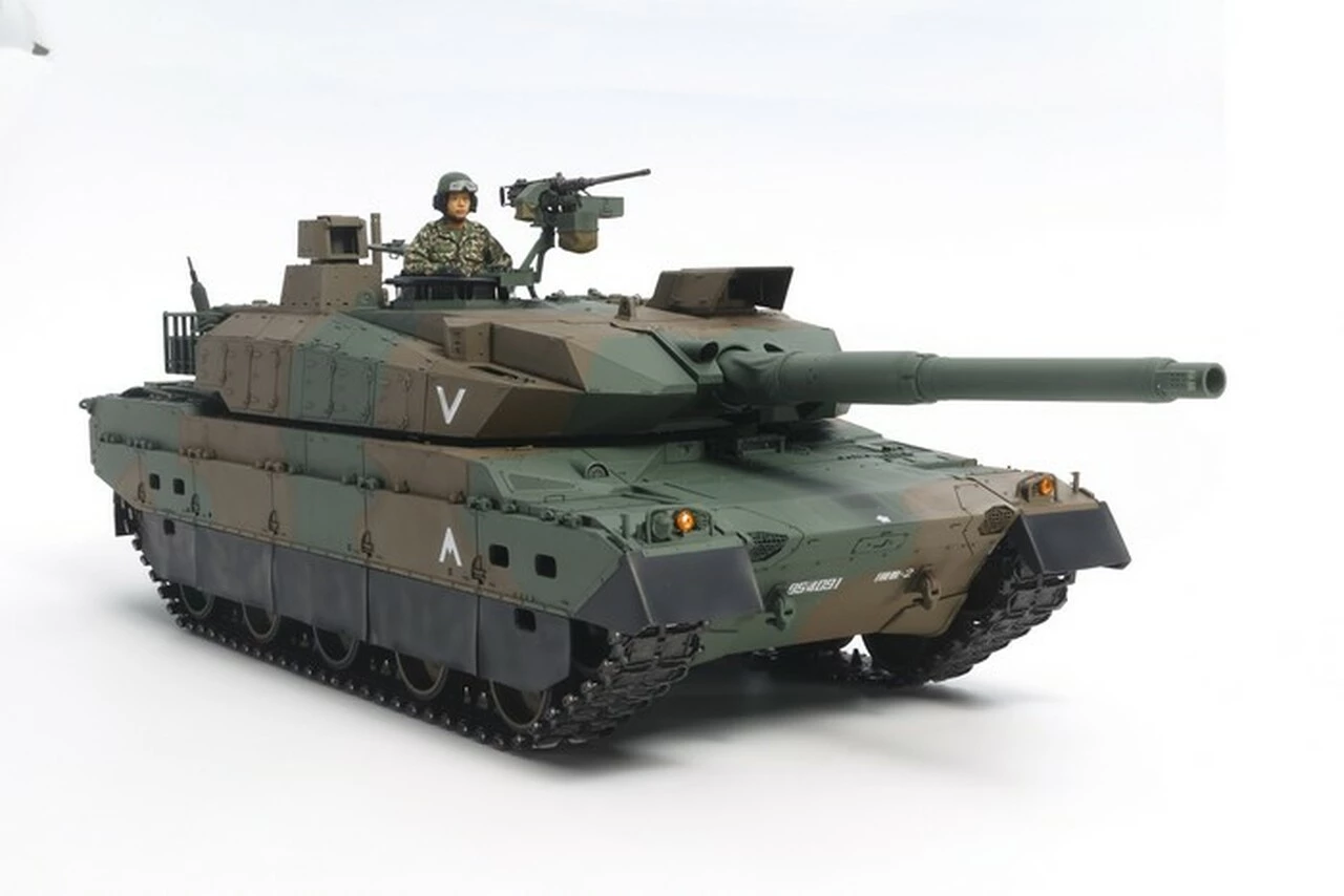 The Type 10, of course, is the high-tech modern addition to the Japan Ground Self Defense Force (JGSDF), and comes loaded with state-of-the-art features such as a newly-designed 120mm smoothbore main gun, and modular armor. It was built to a relatively small and lightweight design for suitability of use in the mountainous Japanese archipelago, and offers excellent speed and maneuverability. Perhaps most importantly, it was also designed to be compatible with the modern C4I communications network system. Deployment started in 2012 and continues apace as the Type 10 looks set to be a key element of Japanese ground defense armor. The model depicted by Tamiya was first introduced in 1/35 scale then later as a 1/16 R/C tank. This variant is a static model version without all the RC components for modelers wanting to build the largest scale version of the Type 10.