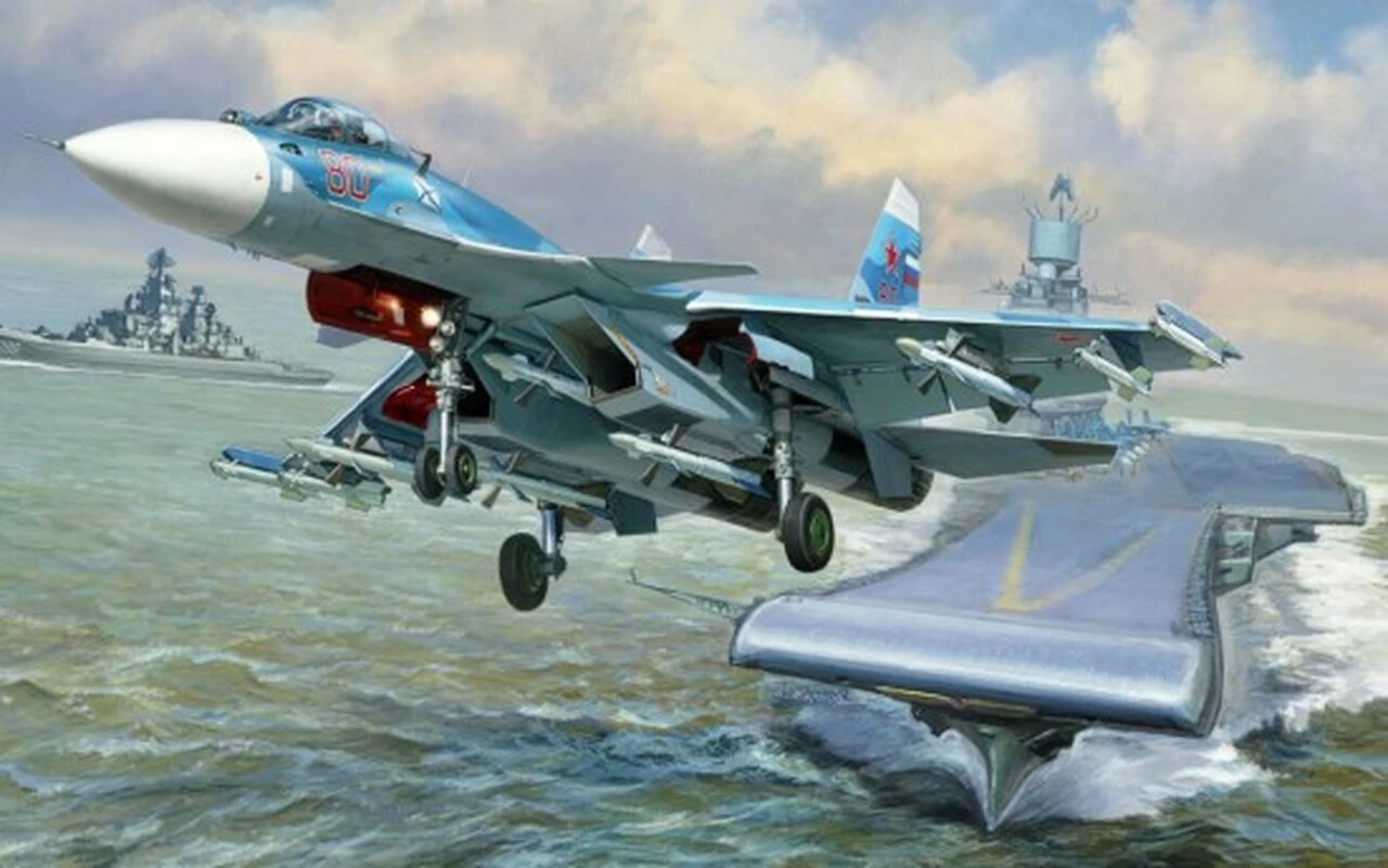 The Su-33 is a Russian fourth-generation carrier-based air superiority fighter developed for the Russian Navy. It officially entered service in the summer of 1998; by that time it had already been receiving improvements for nine years. Compared to the prototype, the Su-33 has larger folding wings, up-to-date navigation equipment, higher thrust to weight ratio, increased weapons load, and its air refuelable. Due to these unchallenged advantages the Su-33 became the most powerful ship-based fighter in the world. It’s in service with the Russian “Admiral Kuznetsov” heavy aviation cruiser.