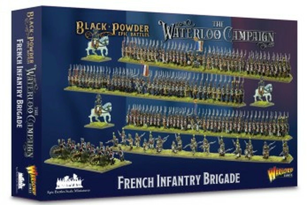 This plastic set provides enough models to field a complete brigade of three French line or light infantry regiments of 80 men each, 24 voltigeurs skirmishing, a 3-gun Foot Artillery 6-pdr battery and a mounted brigade commander.