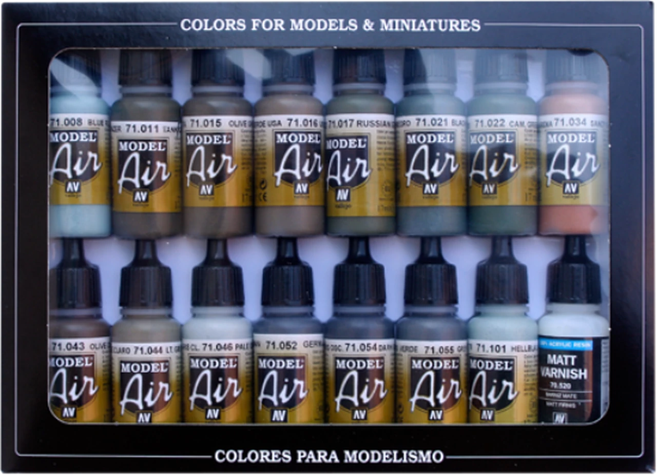 Contains 16 17ml. Model Air acrylic airbrush-ready paints. Click on picture to view colors.