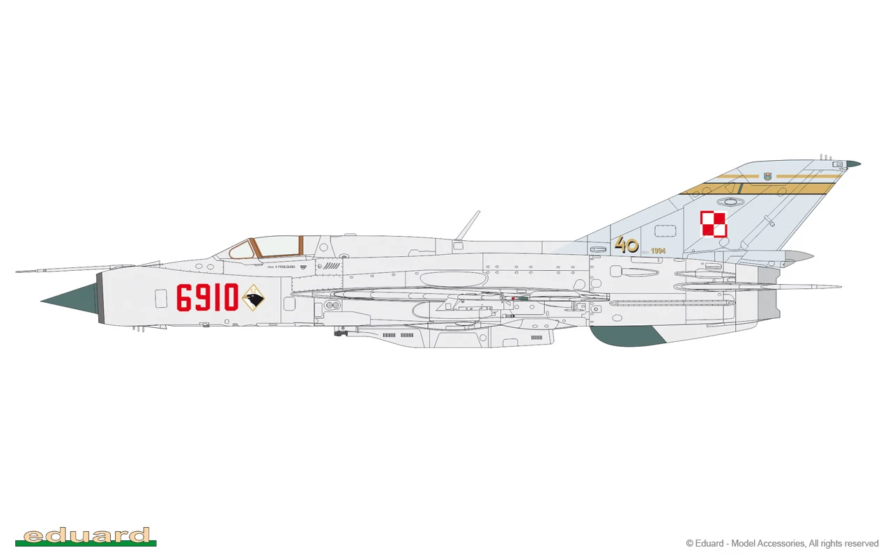 Simplified version of Eduard’s MiG-21PFM. Contains plastic parts and one decal marking scheme.