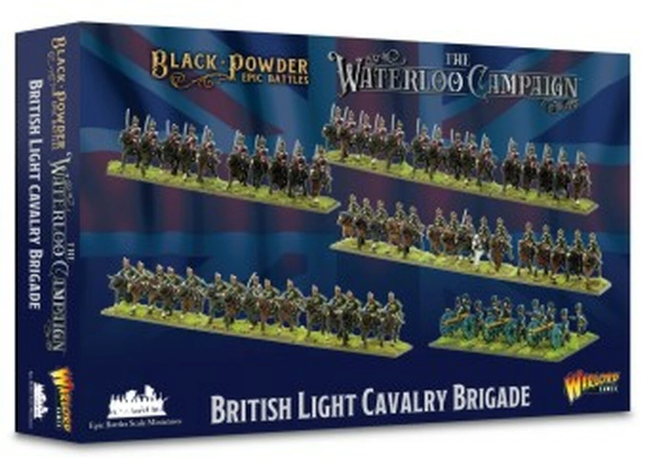 This plastic set provides enough models to field a complete brigade of three British light cavalry regiments (3 bases of Hussars in shako, 3 bases of Hussars in busby and 5 bases of Light Dragoons) and a 3-gun battery of Royal Horse Artillery 9-pdrs.