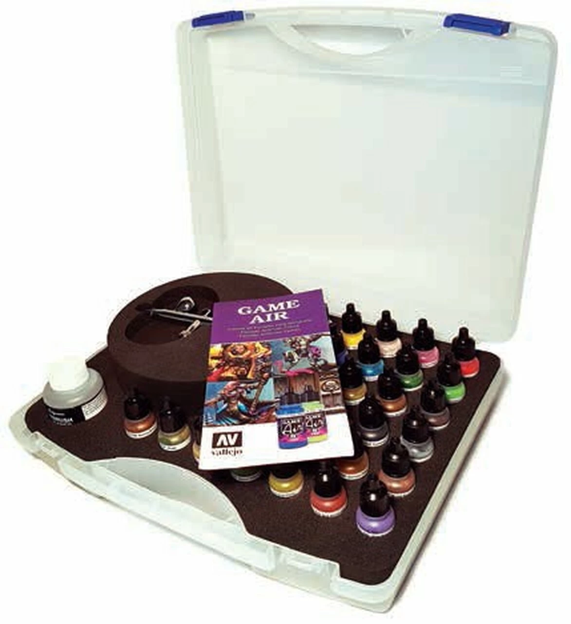Discount π Basic Game Air Paint Set in Plastic Storage Case (28 Colors, Thinner, Cleaner & Airbrush w/Hose) Vallejo Paint π