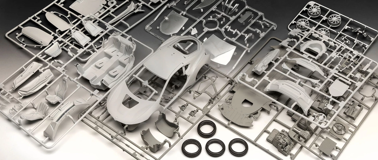 Plastic model kit starter set. Includes cement and acrylic paints required for assembly.