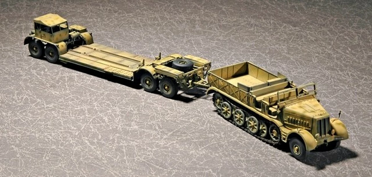 As World War II progressed, the vehicles used on the battlefields became larger and larger. When these mammoth machines broke down or became damaged, the task of bringing them back from the front lines was not an easy one. The German 18-ton heavy half-track FAMO and tank transporter Sd.Ah.116 was one of the vehicles that contributed to this task. Including all variations, over 2500 18-ton half-tracks were produced by the end of WWII. One of the major types was the tank recovery half-track; its power plant was a Maybach HL 108 12-cylinder engine putting out 270hp. Officially known as Sd.Ah.116, the Type 116 Trailer connected with the 18-ton heavy half-track, which allowed for the transportation of 22-23-ton class tanks, such as the Pz.Kpfw.III, Pz.Kpfw.IV and other heavy artillery.