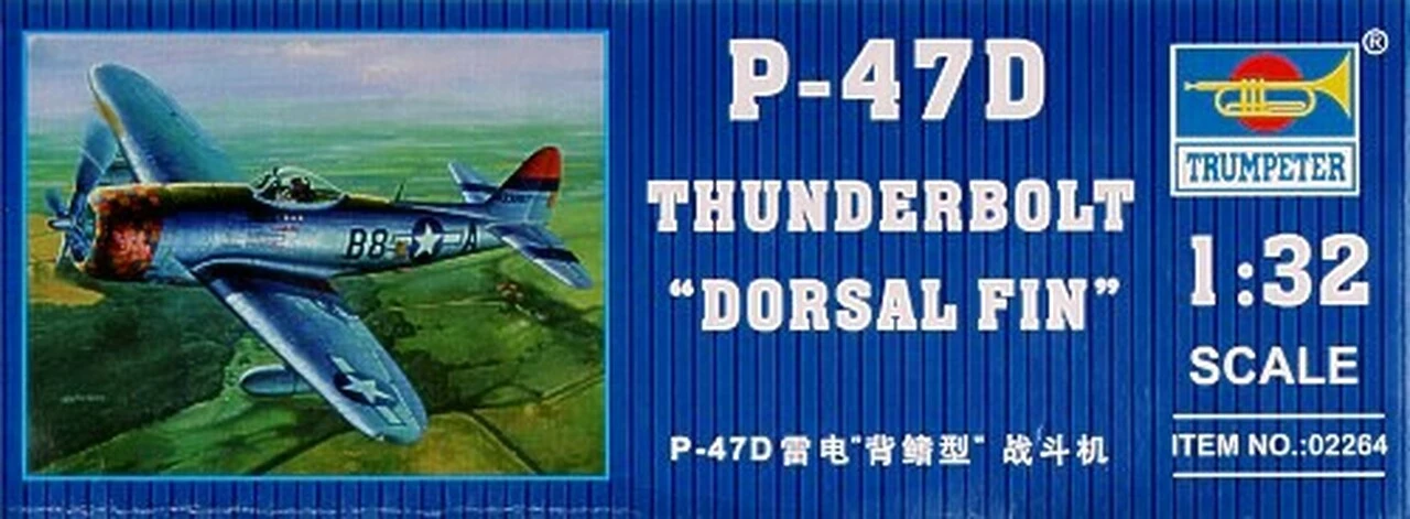 Affectionately known as “the Jug”, the P-47 was a heavy (7-ton) fighter for its time. Designed as an interceptor, it found its true role as a hard-hitting ground-attack aircraft. Its great structural strength and massive radial engine could withstand damage better than that of in-line engine fighters like the P-51and P-38. In March 1942 the first production models started coming off the assembly line, and in January 1943 the 56th Fighter Group was the first to make the new fighter operational, with the 8th Air Force based in Great Britain. Production really hit its stride with the P-47D, which was the largest series. The P-47D had a more powerful engine at high altitude and a heavier bomb load. With drop tanks, the P-47 could escort bombers as far as Berlin. These Thunderbolts were built in several production lots and with a host of designations.