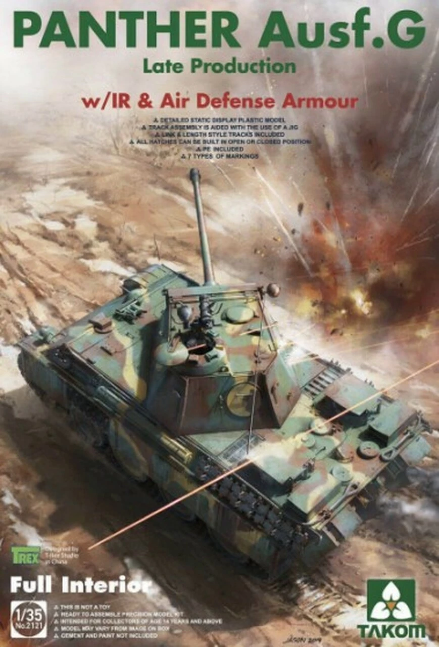 Discount β€οΈ Panther Ausf G Late Production Tank w/IR & Air Defense Armor & Full Interior 1/35 Takom π₯