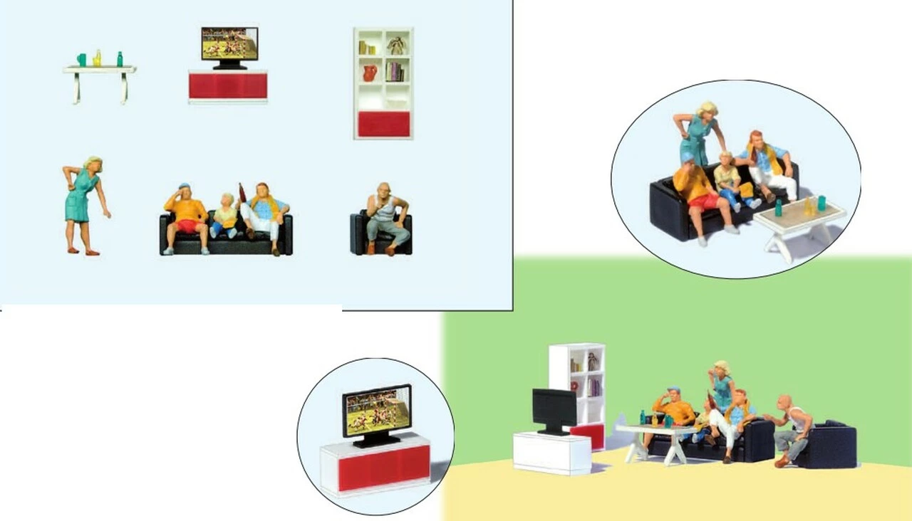 Discount β TV Living Room Furniture W/Family HO Scale Preiser TV Living Room Furniture w/Family HO Scale Preiser π