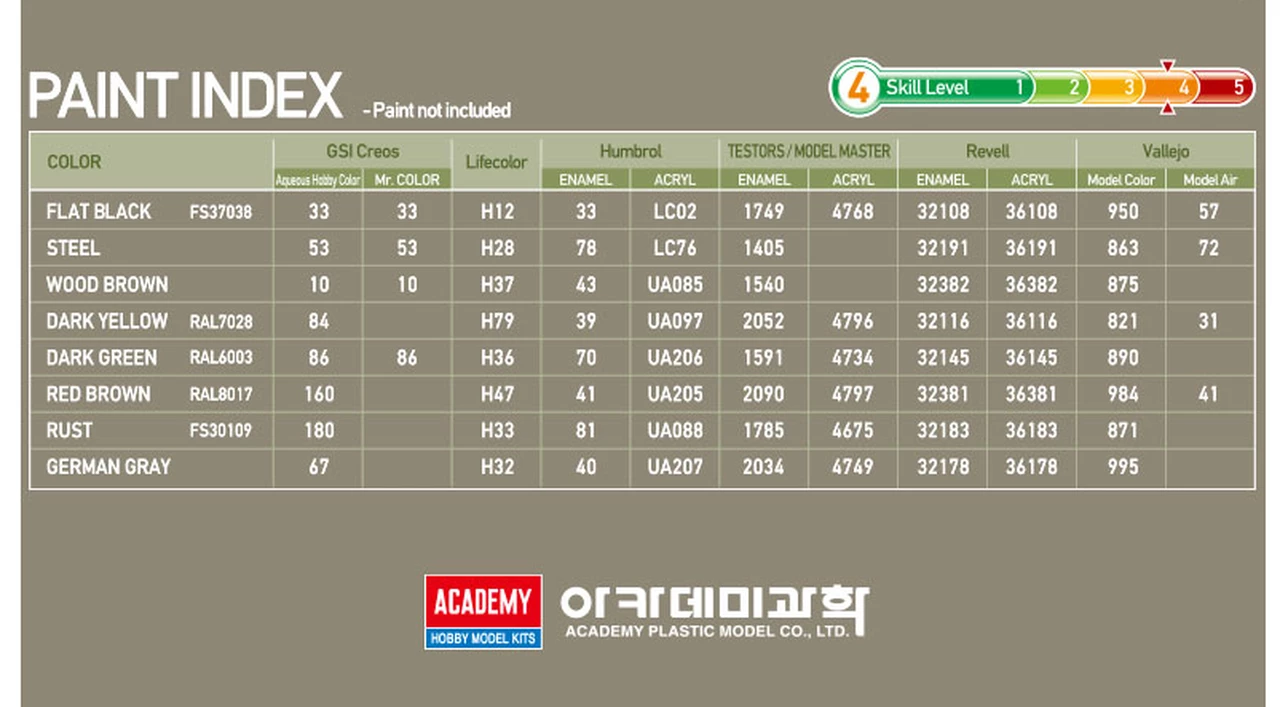 Please see the paint guide below for the manufacturerβs suggested colors.