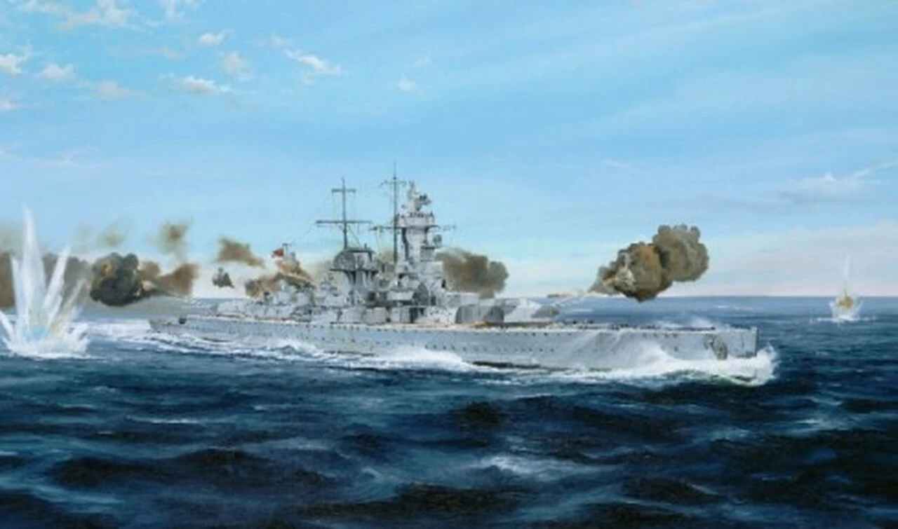 Admiral Graf Spee, commissioned in 1936, was faster than a battleship and more powerful than a cruiser. She was also the first German warship to be fitted with search radar. Her speed could reach up to 28.5 knots and the main battery consisted of six 280mm SK C/28 naval rifles mounted in two triple-turrets. She made five deployments to Spanish waters during the time of the Spanish Civil War. When WWII broke out, she began her cruise as a raider in the South Atlantic and the Indian Ocean. Her orders were to sink British merchant ships but to avoid combat with superior enemy forces, thus threatening vital Allied supply lines and drawing British naval units off their stations in other parts of the world. Admiral Graf Spee sank nine Allied merchant ships (totaling 50,089 tons) during the war. She was deliberately scuttled in 1939 soon after the Battle of the River Plate.