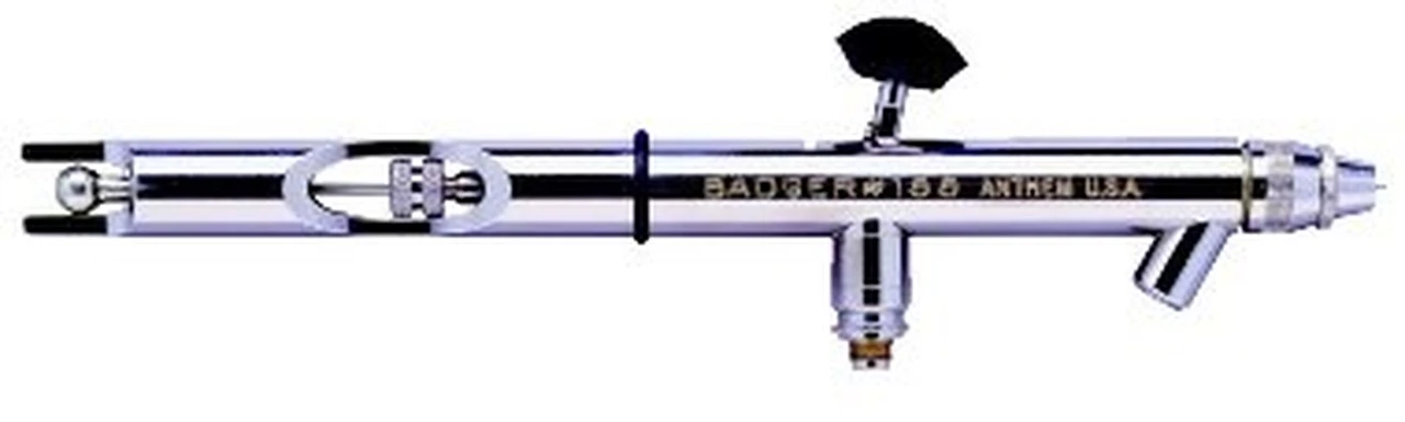 The Anthem, Model 155, is the most comfortable, reliable, proficient, cost effective, user friendly airbrush ever. The two angle needle tip precisely mates with the Anthem’s cone shaped nozzle enabling a single needle/nozzle configuration to spray virtually any desired material, thus eliminating the need for fine, medium, or large needle/nozzle variations. The Anthem’s body design provides exacting balance and long term user comfort. The Anthem also provides flawless performance in the most rigorous of production airbrushing environments. FEATURES: Single needle/nozzle for spraying all mediums, inks, dyes, watercolors, acrylics, enamels, lacquers, glazes, latex, Air-Opaque, Air-Tex, MODELflex Totally Tattoo and Totally Tan colors Single needle/nozzle sprays pencil lines to 3″ (76mm) spray pattern Minimal spare parts to stock Easy maintenance and cleaning Fastest needle release on the market Finger tight assembly tolerances Excellent for multiple applications for novice to advanced airbrushers Comes with a comfortable, adjustable trigger cushion Lifetime warranty on labor and PTFE seals Fine replacement parts now available