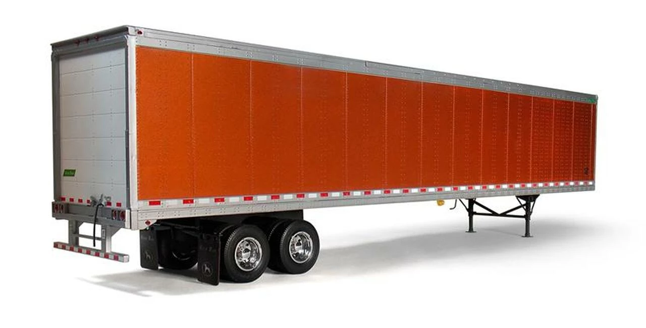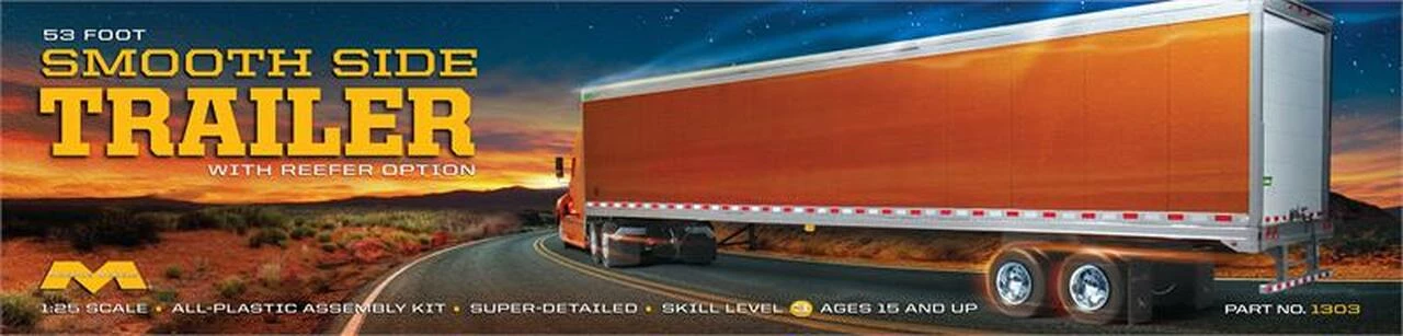 This 1/25 scale model of a 53′ smoothside trailer with reefer includes an optional refrigeration unit and rear double doors, chrome-type wheels and decals.Β