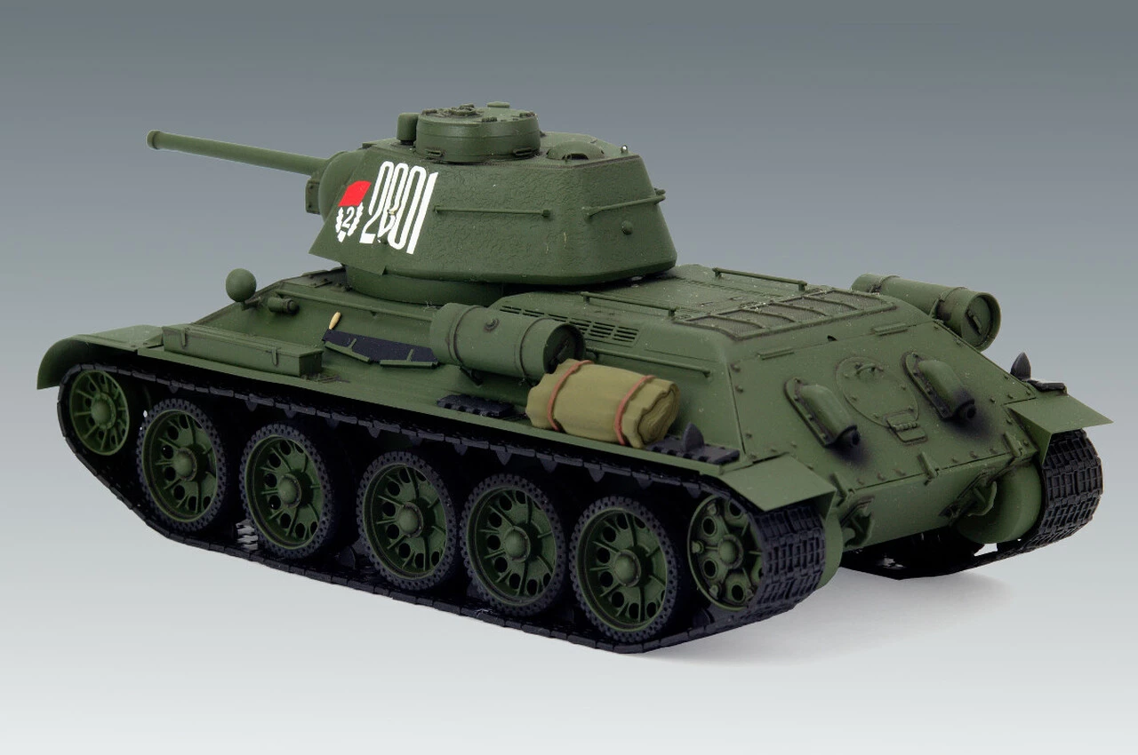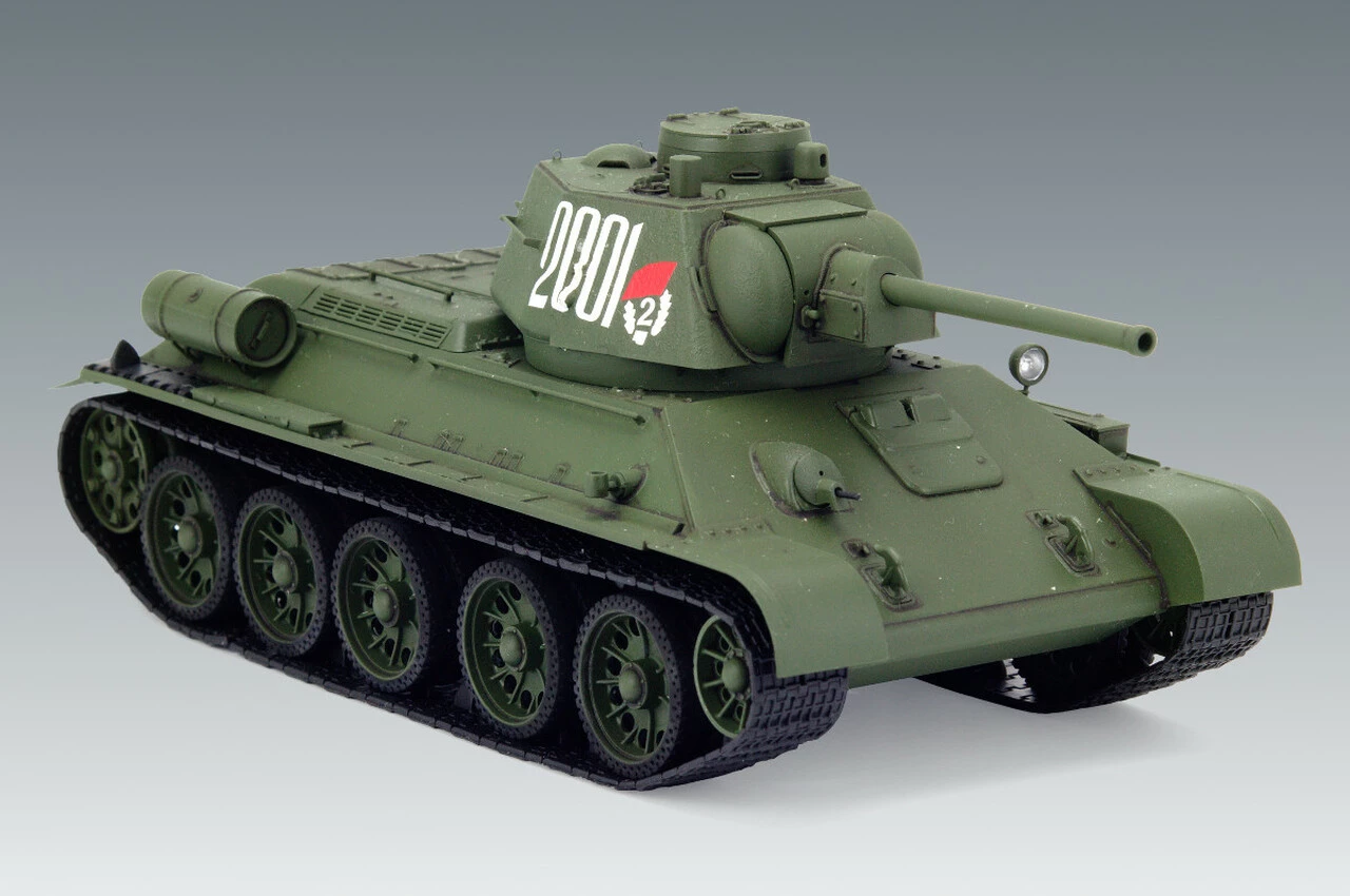 The most numerous and famous tank in world history was the Soviet T-34, designed at the Kharkov plant number 183. Serial production was launched in 1940. It was the first mass-production tank with anti-projectile armor, a powerful diesel engine and a 76.2mm long-barreled gun. Until the end of 1941, it was considered the worldβs best tank. The modification with the improved turret known as a nut began production in 1942. The T-34 with the 76.2mm F-34 gun was the main Soviet medium tank up to the end of 1944, when it was replaced by the more powerfully armed T-34/85. Over 35,000 T-34/76 tanks were produced in six plants from 1940-1944.