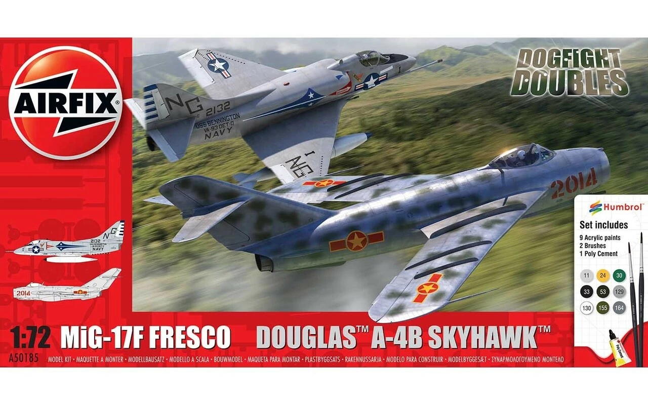 Armed with cannons, bombs and unguided missiles, the little A4 Skyhawks would skim across the rice paddies and hug the densely forested mountains of Vietnam in the early days of the Vietnam war of the 1960s. Against them ranged small arms fire, artillery, guided surface to air missiles and MiGβs of the North Vietnamese Air Force. Alongside the supersonic MiG-21 was the older subsonic MiG-17F. This aircraft, codenamed Fresco, was a very maneuverable opponent, and certainly a match for the Skyhawk. Between them, they formed the backbone of the air war over Vietnam.