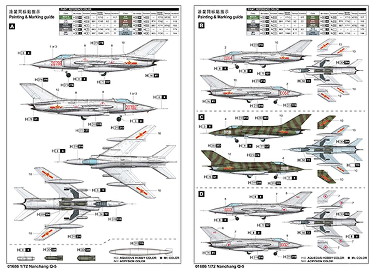 Q-5 is derived from China’s F-6 (J-6) / MiG-19 and entered mass production in 1969. The initial design and development began in the early 1960s. As originally designed, the Q-5 used two 30mm cannons installed in the nose on both sides; it later changed to two 23mm cannons in the wings. The lengthened fuselage incorporates an internal weapons bay. Additional ordnance can be carried on external pylons under each wing. A later variant was adapted to carry nuclear armament. Q-5 has been continuously improved and upgraded, eventually becoming a huge family of single- and two-seat types. Production of the Q-5 series exceeded more than one thousand aircraft. In addition to Chinese air & naval deployment, Q-5 has been exported to North Korea, Pakistan and other countries known locally as the A-5.
