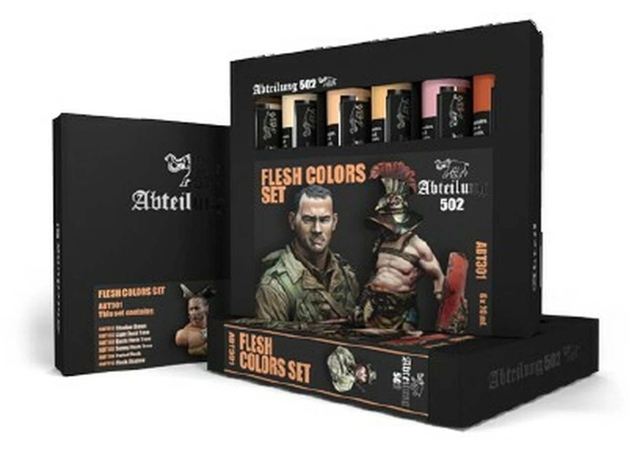 It contains: ABT15 Shadow Brown, ABT135 Light Flesh Tone, ABT140 Basic Flesh Tone, ABT145 Sunny Flesh Tone, ABT190 Faded Flesh, ABT215 Flesh Shadow.