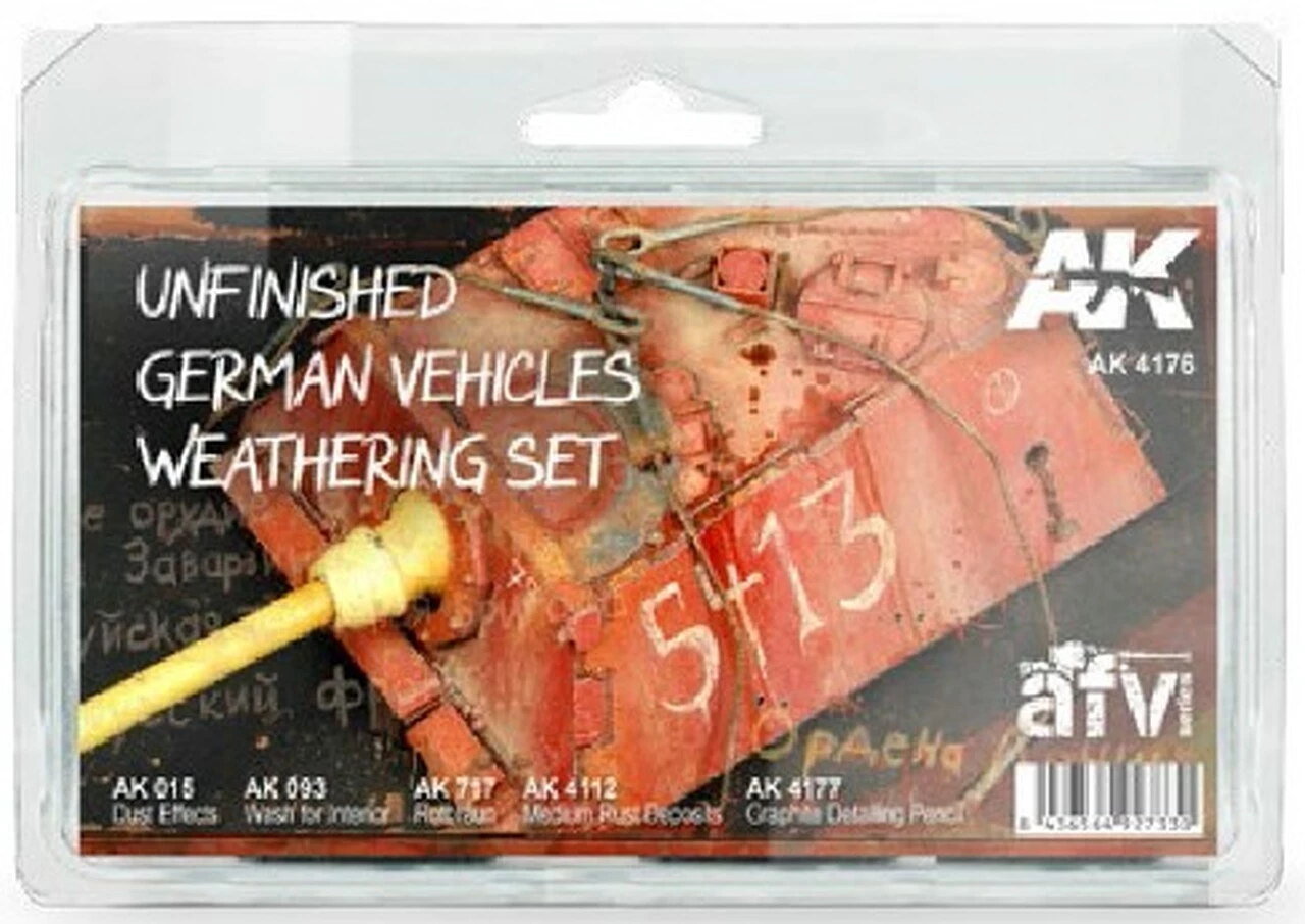 With this set the modeler will find the typical reddish color Rotbraun and a wash to highlight the vehicleΒs shapes which are painted with this color. Also the effect to simulate with this color the dust that is accumulated in workshops and factories and even the oxide tones of the plates that were not painted. It includes a special non-greasy graphite detailing pencil for the bare metal of the worn edges of the vehicles.