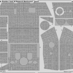 Two sheets of photoetched parts for Tamiya’s 1/35th scale Panther Ausf D