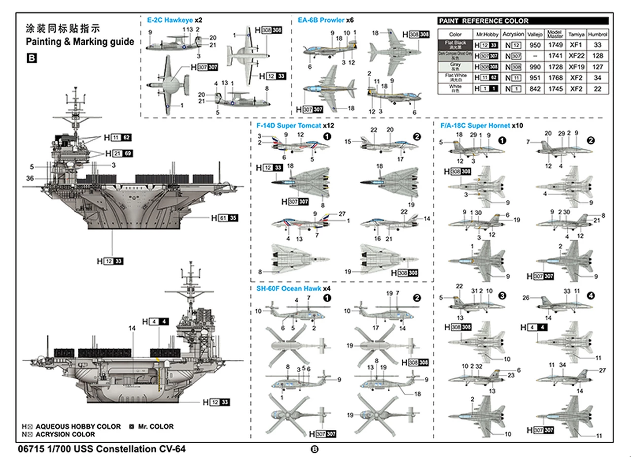 – Includes two E-2C Hawkeye, four SH-60F Ocean Hawk, six EA-6B Prowler, ten F/A-18C Super Hornet and twelve F-14D Super Tomcat aircraft
