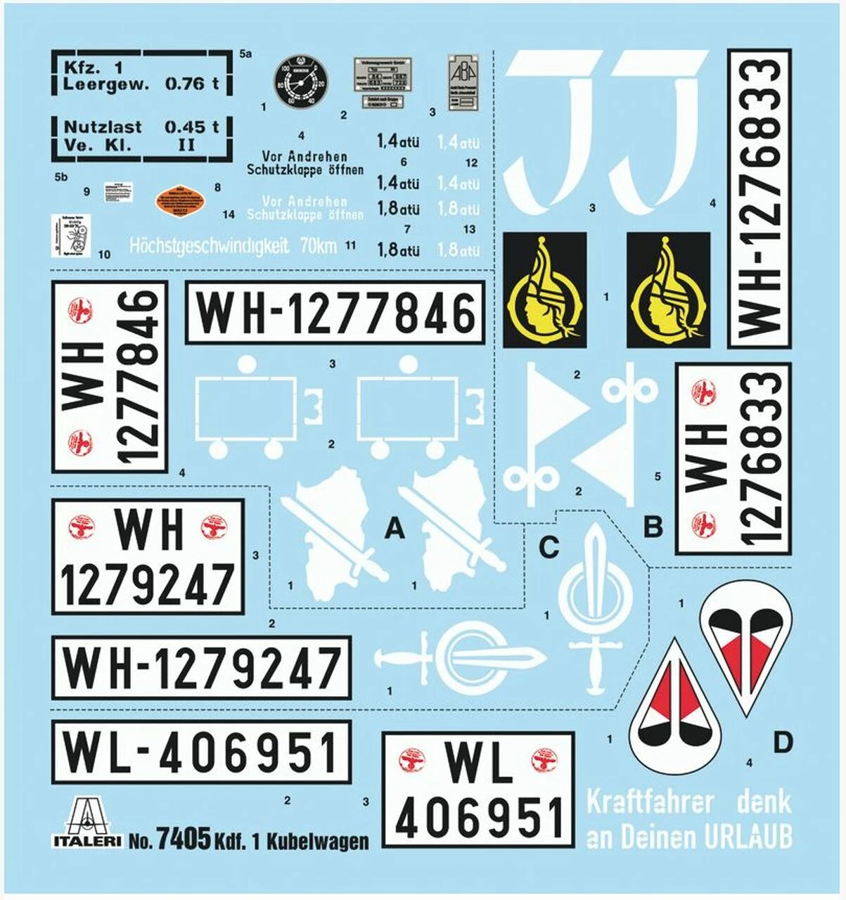 Working suspensions – Openable lid – Higly detailed engine – Higly deteiled decals sheet – Canvas roof and windows – Working canvas roof – Steering front axle – Rubber tires – Colors instructions sheet