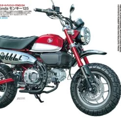 This Tamiya 1/12 model replica recreates the all-new Honda Monkey 125. The Monkey line was first sold in Japan in 1967, and soon gained long-lasting worldwide acclaim with its rather diminutive yet cheerful design. The Monkey 125 features a bigger 124cc engine, yet is packed with the Monkeyβs trademark cheeky charm β chunky tires, rounded design motifs for headlight, speedo and more, plus gleaming chromed fenders and muffler cover.Β