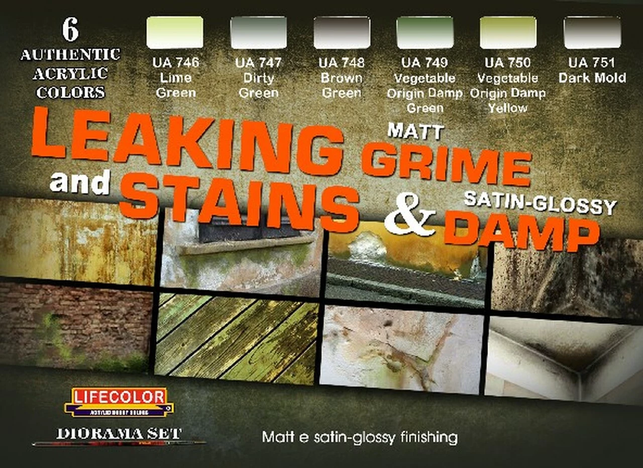 Wholesale π Leaking Grime Matt – Stains & Damp Satin Glossy Diorama Acrylic Set (6 22ml Bottles) Lifecolor π