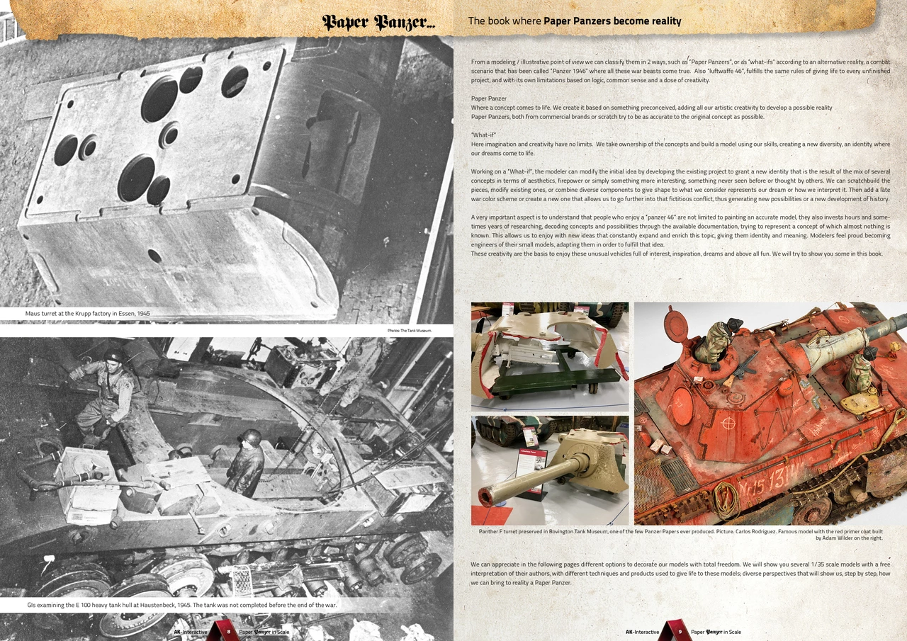 Some modelers are increasingly interested in exploring new fields, and allowing themselves some artistic license, why not? This type of vehicle is becoming increasingly important among the many brands for launching news and information on new releases. There has been a boom in this type of modeling, and every time there is a new release it awakens more curiosity among modelers around the world. This book will load the modelers mind with original ideas to address alternative projects. We will see where the concept of Panzer Papers comes from and its differences with the what if models, besides inspiring us with profiles of all kinds. It will feature many of the best modelers in the world using the present techniques and will show us how to make some of these vehicles and will leave nothing different behind.